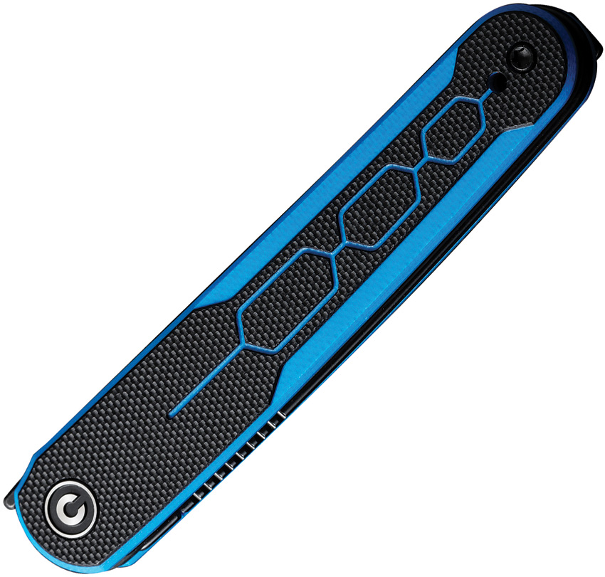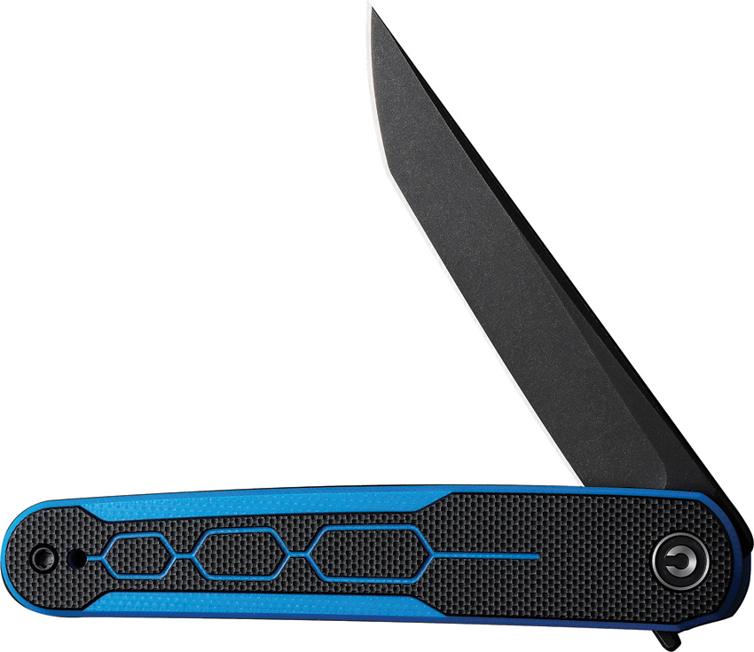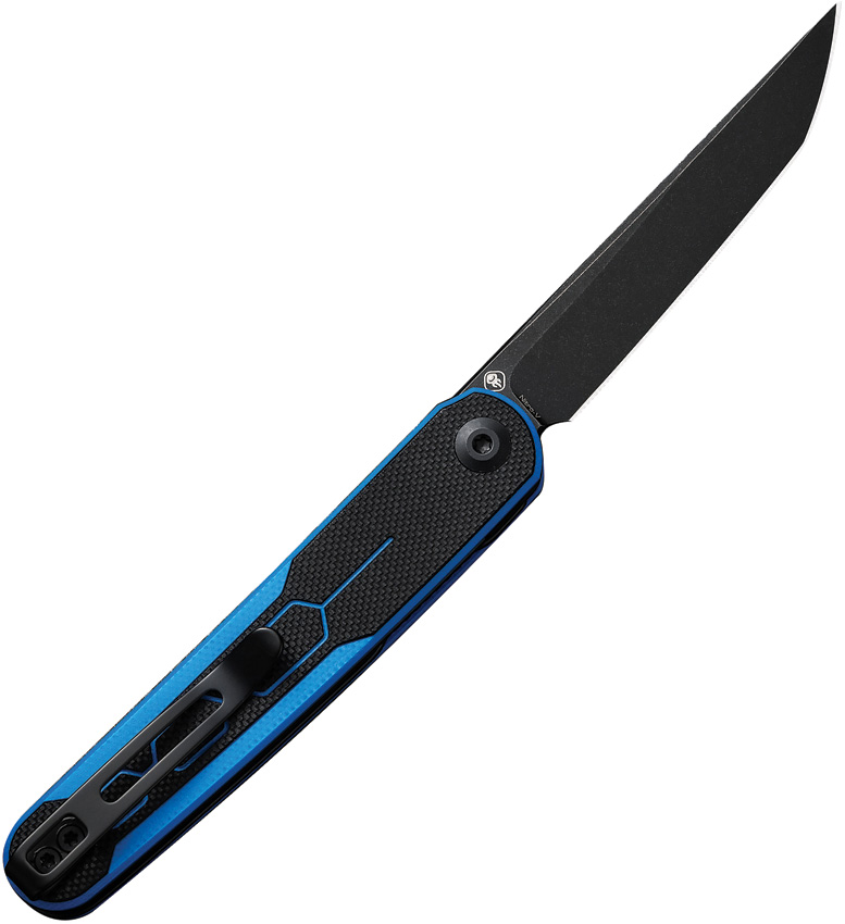 4″ (10.16cm) closed. 3″ (7.62cm) black stonewash finish Nitro V steel tanto blade. Black and blue G10 handle. Extended tang. Pocket clip. Black nylon zippered storage case. Boxed.