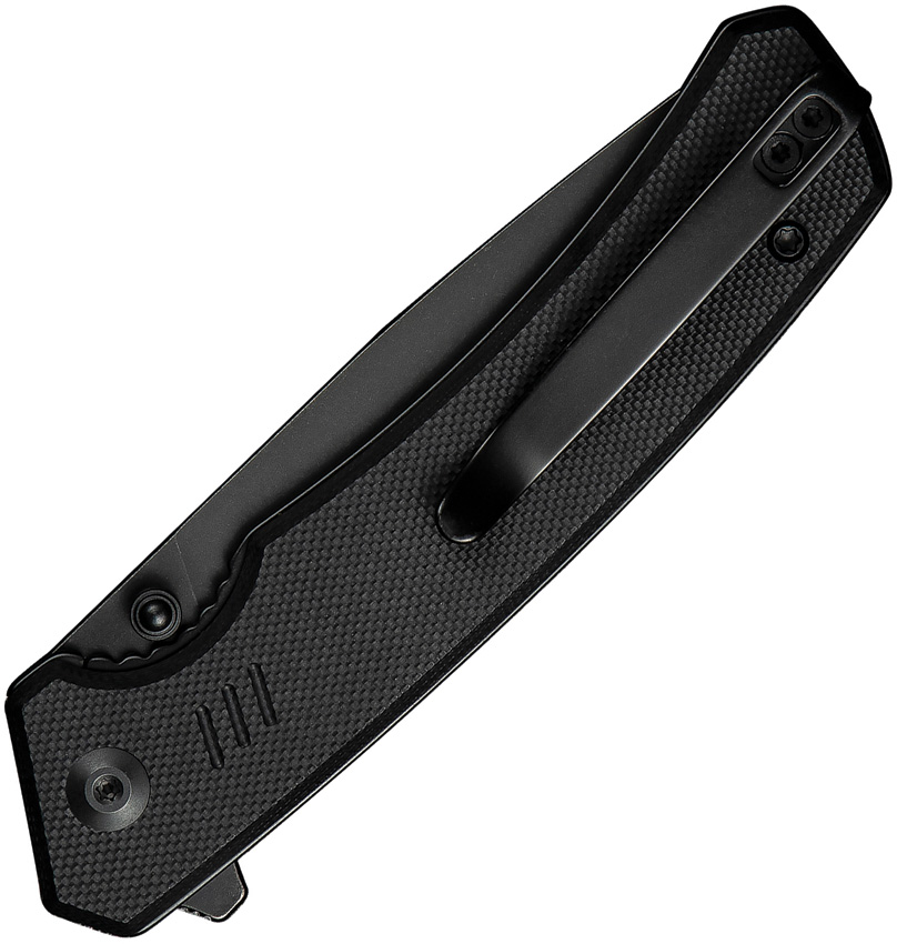 4.25″ (10.8cm) closed. 3.25″ (8.26cm) black stonewash finish 14C28N Sandvik stainless drop point blade. Black G10 handle. Extended tang. Thumb stud. Pocket clip. Black nylon zippered storage case. Boxed.