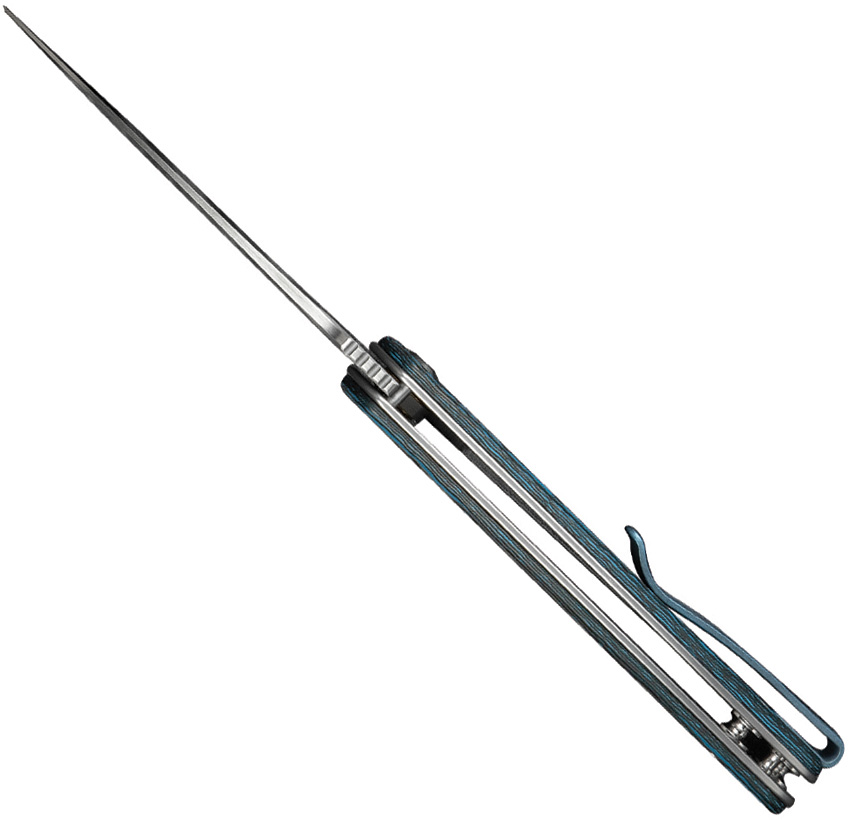 3.88″ (9.86cm) closed. 3″ (7.62cm) satin finish S35VN stainless blade. Arctic storm (black and blue) carbon fiber handle. Extended tang. Pocket clip. Special limited edition of 2014 pieces. Black nylon zippered storage case. Boxed.