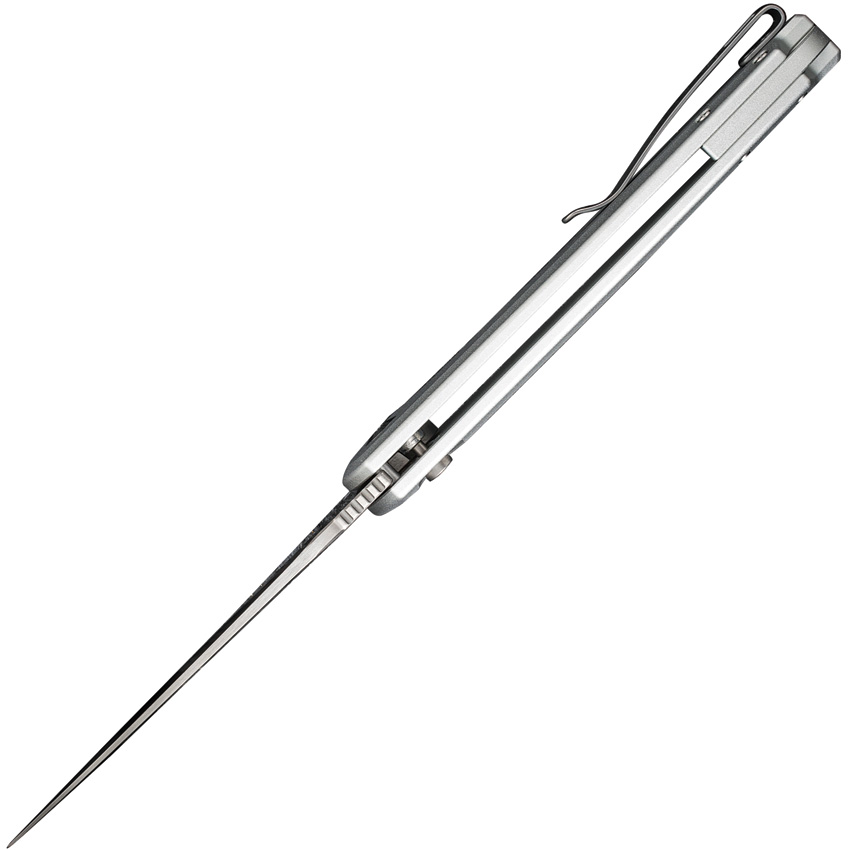 4.87″ (12.37cm) closed. 3.75″ (9.53cm) satin finish Nitro V steel drop point blade. Silver aluminum handle. Extended tang. Pocket clip. Black nylon zippered storage case. Boxed.