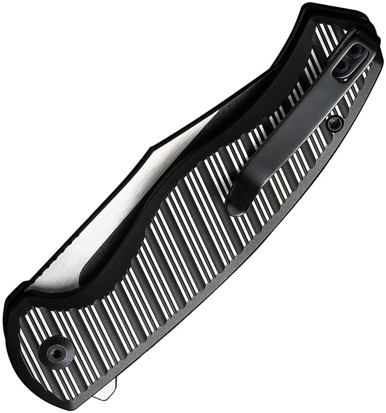 4.25″ (10.8cm) closed. 3.25″ (8.26cm) black stonewash and satin finish Nitro V steel clip point blade. Black and silver aluminum handle. Extended tang. Pocket clip. Black nylon zippered storage case. Boxed.