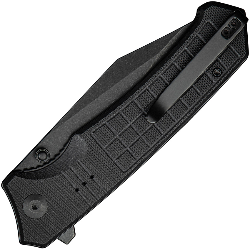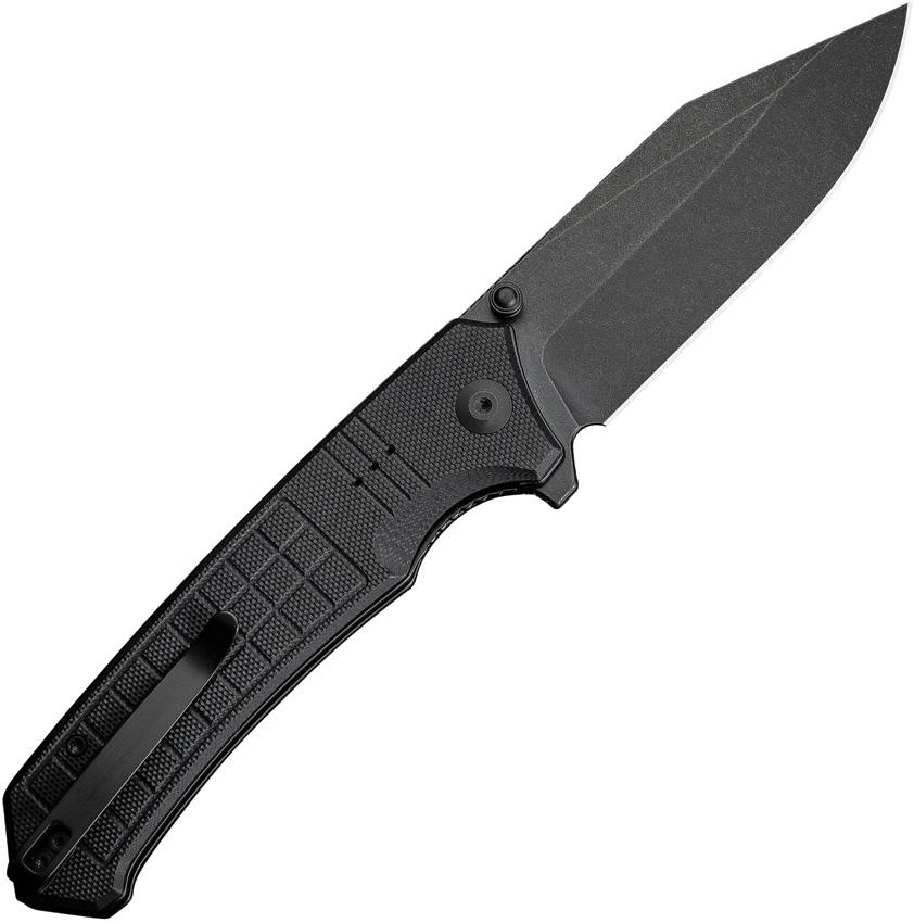 4.75″ (12.07cm) closed. 3.75″ (9.53cm) black stonewash finish Nitro V steel clip point blade. Black G10 handle. Extended tang. Thumb stud. Pocket clip. Black nylon zippered storage case. Boxed.
