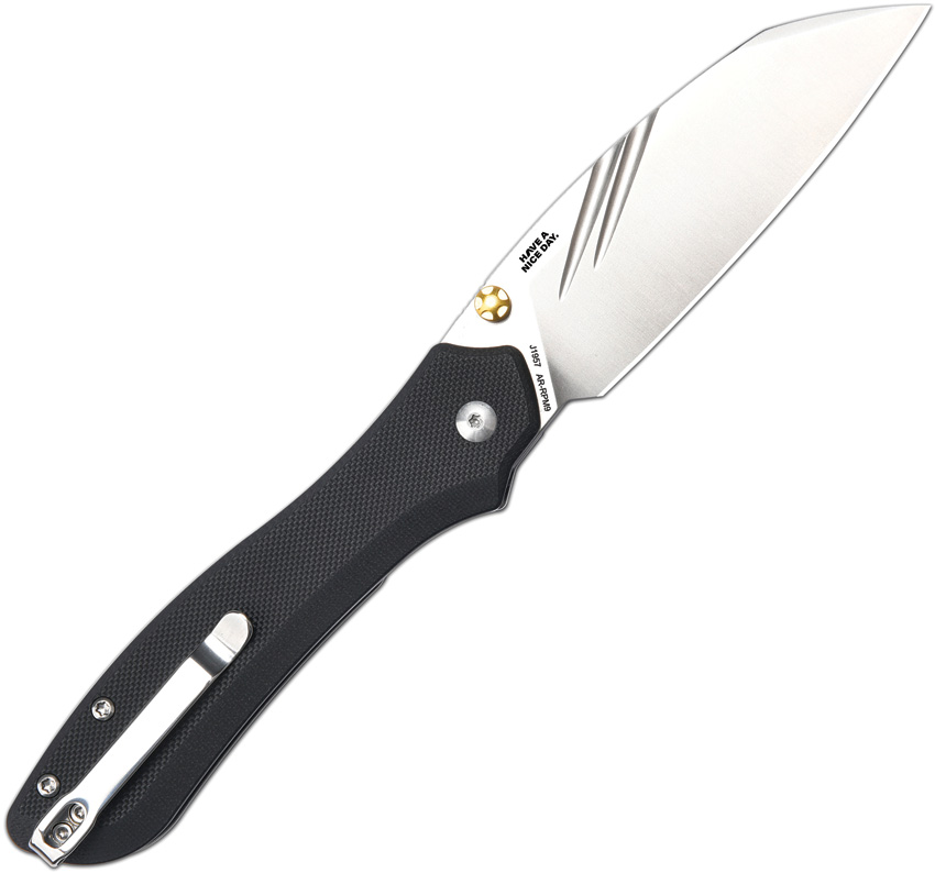 4.75″ (12.07cm) closed. 3.5″ (8.89cm) sand blast finish AR-RPM9 stainless Wharncliffe blade. Black G10 handle. Thumb stud. Pocket clip. Extended tang. Black nylon zippered storage case. Boxed.