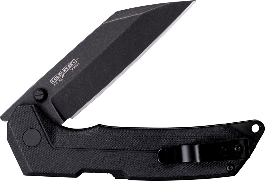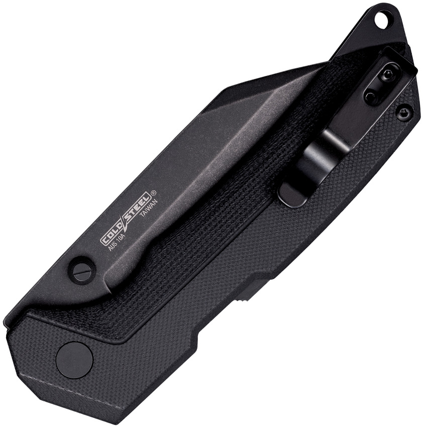 5″ (12.7cm) closed. 3.75″ (9.53cm) black finish AUS-10A stainless blade. Black G10 handle. Thumb stud. Lanyard hole. Pocket clip. Seax style blade. Boxed.