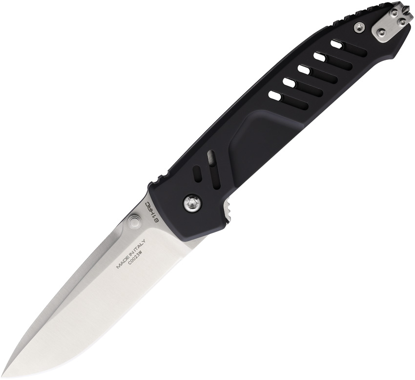 5.25″ (13.34cm) closed. 3.75″ (9.53cm) satin finish Bohler M390 stainless drop point blade. Black anodized aluminum handle. Thumb stud. Pocket clip. Glass breaker. Supported by a new generation safety system HIDDEN LOCK”. Boxed.