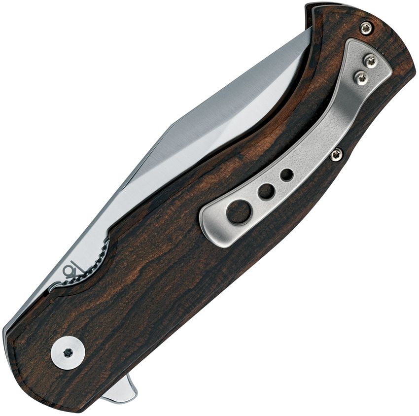 5.25″ (13.34cm) closed. 3.75″ (9.53cm) satin finish CPM S90V stainless blade. Zebra wood handle. Extended tang. Pocket clip. Boxed.