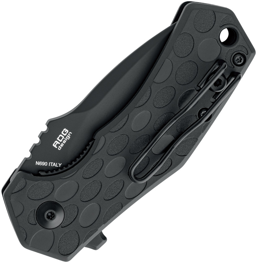 3.5″ (8.89cm) closed. 2.5″ (6.35cm) black Bohler N690 stainless drop point blade. Black textured FRN handle. Extended tang. Lanyard hole. Pocket clip. Top Shield coated blade. Boxed.