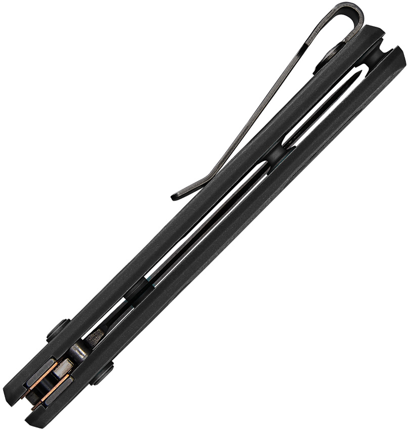 4″ (10.16cm) closed. 3″ (7.62cm) black stonewash finish S30V stainless blade. Black nylon handle. Thumb stud. Lanyard hole. Pocket clip. Boxed.