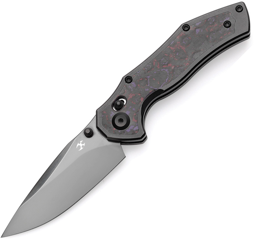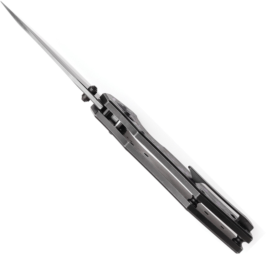 4.25″ (10.8cm) closed. 3.13″ (7.95cm) CPM S35VN stainless drop point blade. Black stonewash finish titanium handle with Purple Haze Fat carbon fiber inlay. Thumb stud. Pocket clip. Mirror DLC coated blade. Black nylon zippered storage case. Boxed.
