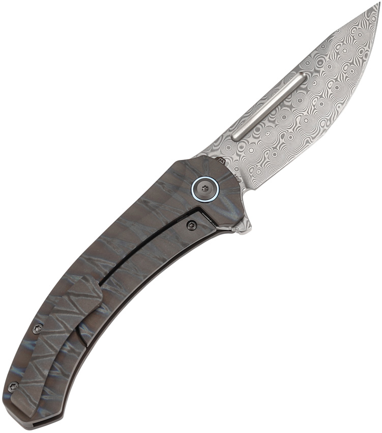 4.5″ (11.43cm) closed. 3.5″ (8.89cm) Damascus steel tanto blade. Flame anodized titanium handle. Extended tang. Pocket clip. Boxed.