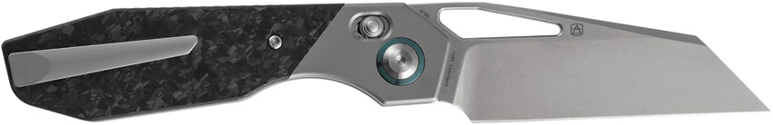5″ (12.7cm) closed. 3.63″ (9.22cm) stonewash finish Elmax steel Wharncliffe blade. Bead blast finish titanium handle with Shredded carbon fiber inlay. Thumb pull. Pocket clip. Black nylon pouch. Boxed.