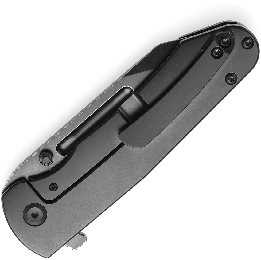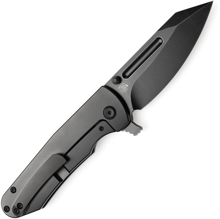 5.13″ (13.03cm) closed. 3.88″ (9.86cm) BlackWash finish CPM S35VN stainless Wharncliffe blade. Black anodized titanium handle. Extended tang. Thumb stud. Pocket clip. Black nylon zippered storage case. Boxed.