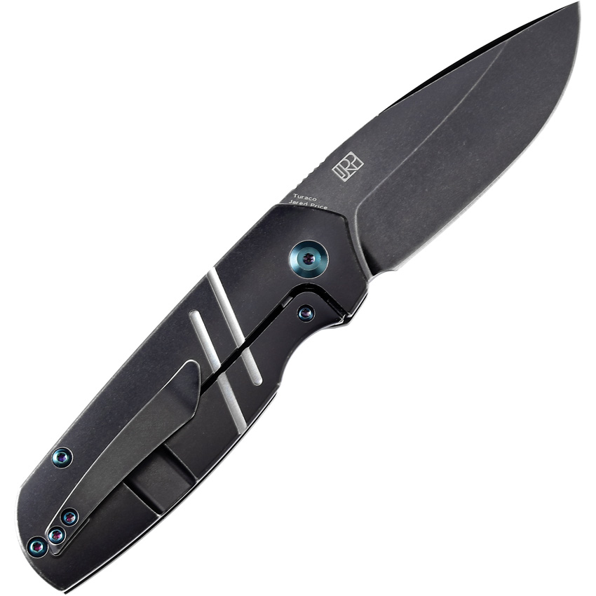 3.88″ (9.86cm) closed. 2.88″ (7.32cm) black stonewash finish CPM S35VN stainless blade. Black stonewash finish titanium handle. Extended tang. Pocket clip. Black nylon pouch. Boxed.
