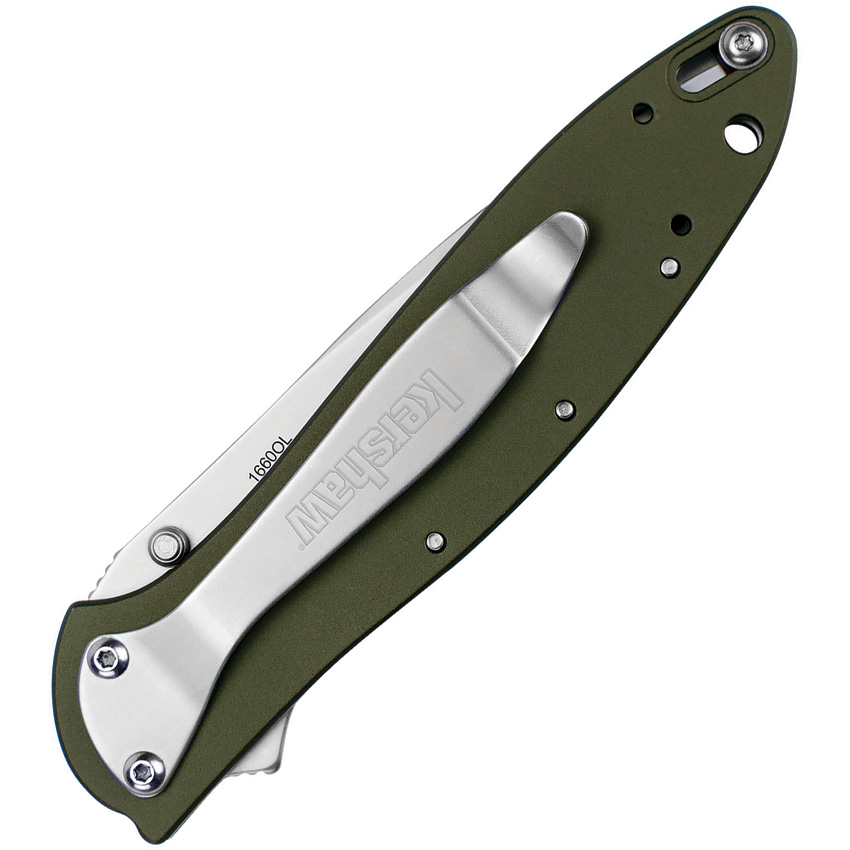 Assisted opening. 4″ closed. 3″ bead blast finish Sandvik 14C28N stainless blade. Green anodized aluminum handle. Extended tang. Thumb stud. Pocket clip. Lanyard hole. Features the Speed-Safe torsion bar mechanism. Boxed.