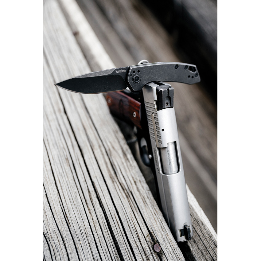 Assisted opening. 4″ (10.16cm) closed. 3″ (7.62cm) BlackWash finish 8Cr13MoV stainless blade. BlackWash finish stainless handle. Extended tang. Lanyard hole. Pocket clip. Boxed.
