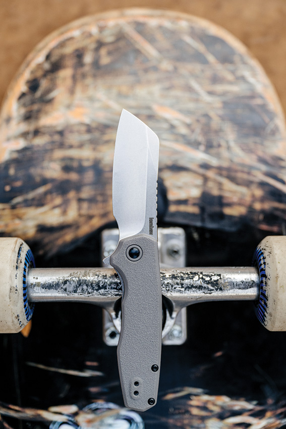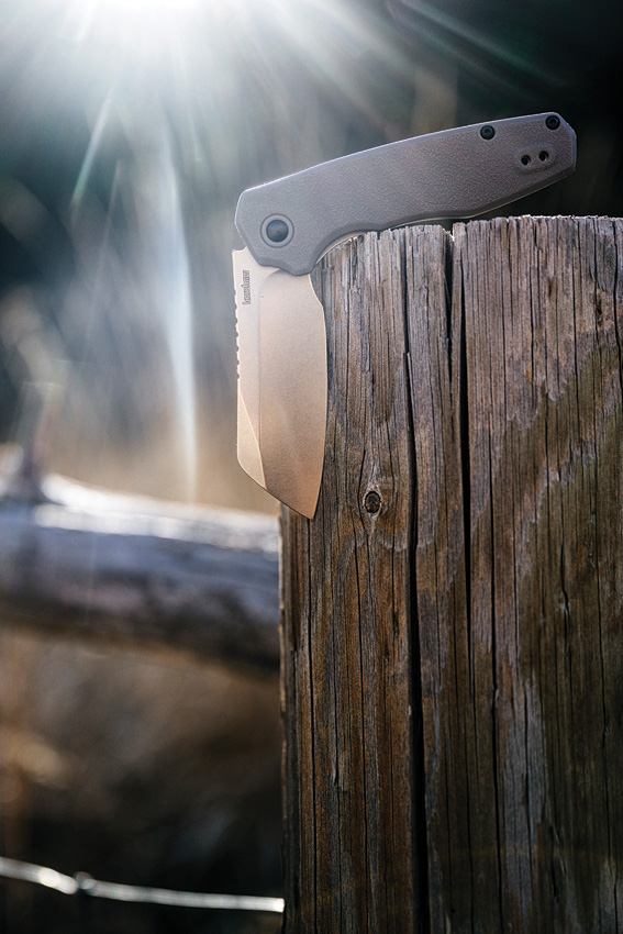 Assisted opening. 4″ (10.16cm) closed. 2.88″ (7.32cm) stonewash finish 8Cr13MoV stainless cleaver style blade. Gray glass filled nylon handle. Extended tang. Pocket clip. Boxed.