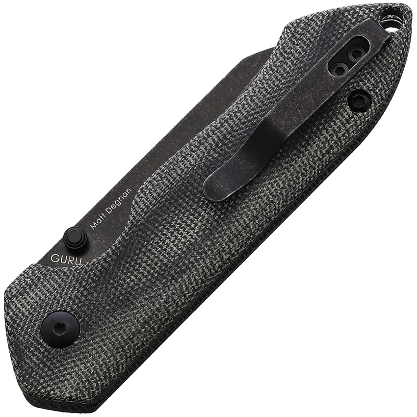 4.5″ (11.43cm) closed. 3″ (7.62cm) black stonewash finish 154CM stainless blade. Black canvas micarta handle. Thumb stud. Lanyard hole. Pocket clip. Boxed.