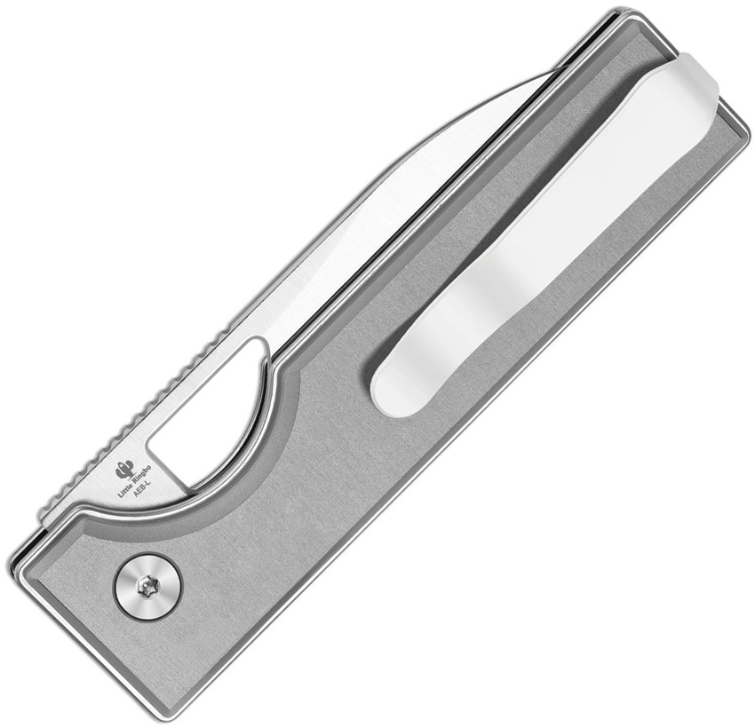 3.88″ (9.86cm) closed. 2.88″ (7.32cm) satin finish AEB-L stainless drop point blade. Silver aluminum handle. Thumb pull. Pocket clip. Boxed.