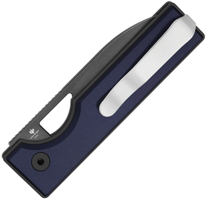 3.88″ (9.86cm) closed. 2.88″ (7.32cm) gray stonewash finish AEB-L stainless drop point blade. Blue aluminum handle. Thumb pull. Pocket clip. Boxed.