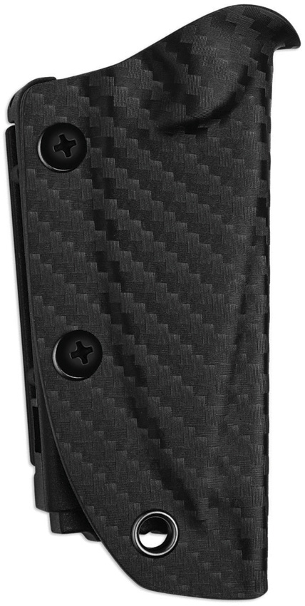 6.5″ (16.51cm) overall. 3″ (7.62cm) satin finish Bohler M390 stainless blade. Carbon fiber handle. Full tang. Black Kydex belt sheath. Boxed.