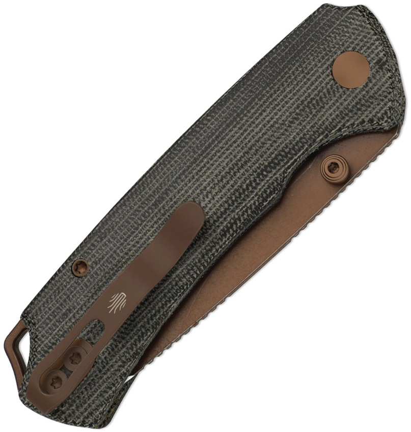 4.38″ (11.13cm) closed. 3.25″ (8.26cm) PVD coated Nitro V steel drop point blade. Black Norplex UltreX micarta handle. Thumb stud. Lanyard hole. Pocket clip. Sunset Metal blade. Boxed.