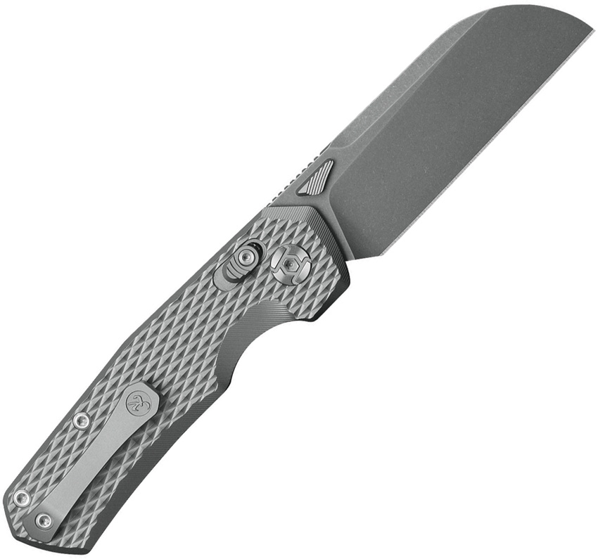 4.25″ (10.8cm) closed. 3.75″ (9.53cm) stonewash finish sheepsfoot blade. Diamond texture titanium handle. Thumb stud. Pocket clip. PM 60 steel blade. Boxed.