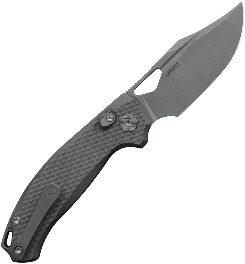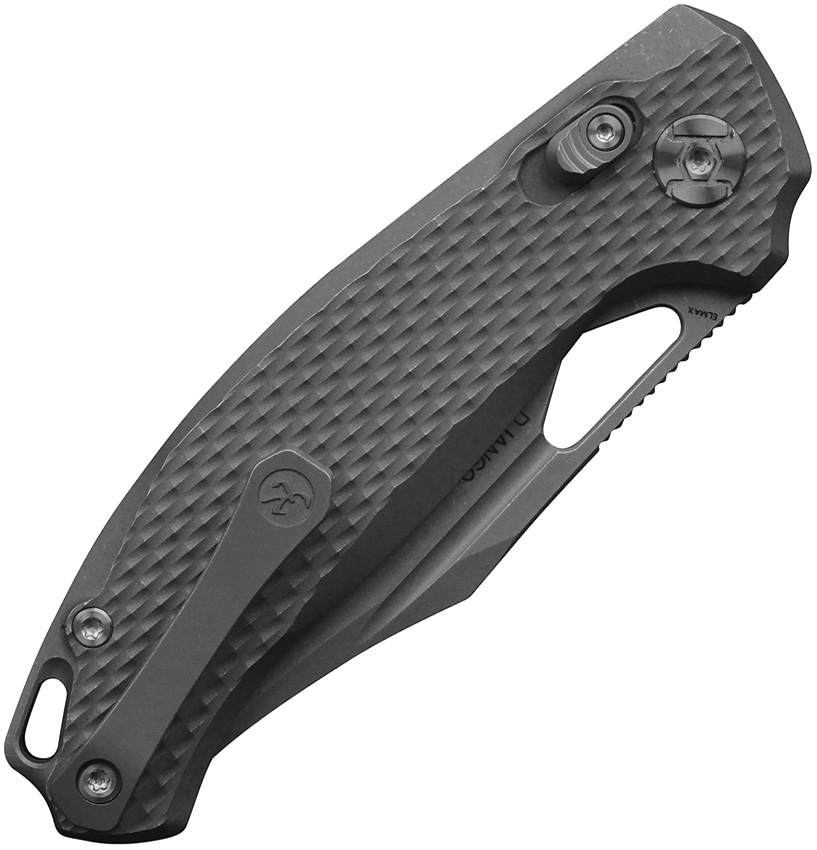 4.5″ (11.43cm) closed. 3.25″ (8.26cm) stonewash finish Elmax steel clip point blade. Diamond texture stonewash finish titanium handle. Thumb pull. Lanyard hole. Pocket clip. Boxed.