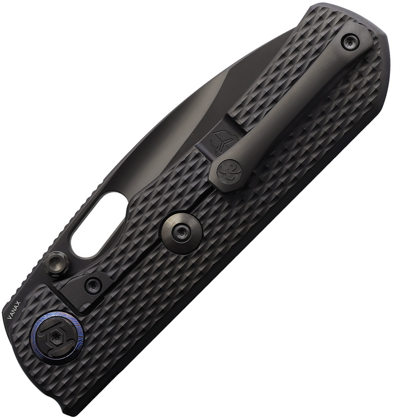 4.75″ (12.07cm) closed. 3.75″ (9.53cm) black DLC coated Vanax steel blade. Black DLC coated titanium handle. Thumb pull. Thumb stud. Pocket clip. Boxed.