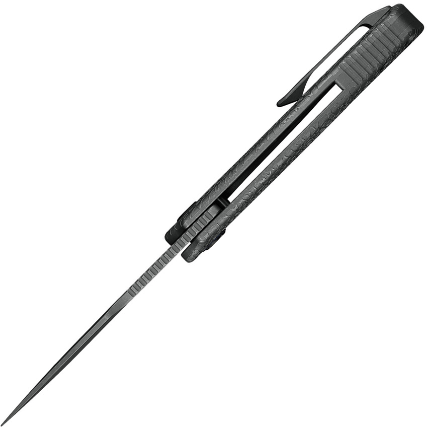 4.75″ (12.07cm) closed. 3.63″ (9.22cm) stonewash finish blade. Honeydew texture stonewash finish titanium handle. Thumb pull. Pocket clip. Lanyard hole. S390 stainless blade. Boxed.