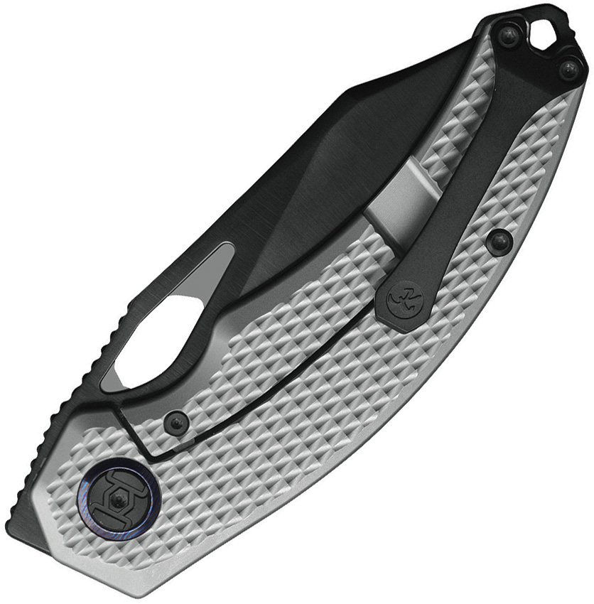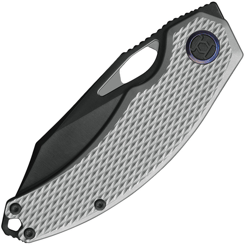 4.75″ (12.07cm) closed. 3.38″ (8.59cm) black DLC coated Vanax steel blade. Diamond texture titanium handle. Thumb pull. Pocket clip. Extended tang. Boxed.
