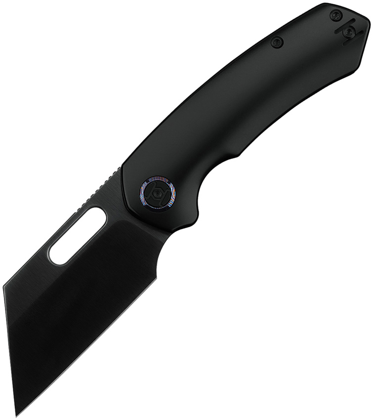 4.25″ (10.8cm) closed. 3.25″ (8.26cm) black DLC coated cleaver style blade. Black DLC coated titanium handle. Thumb pull. Lanyard hole. Pocket clip. Extended tang. VANCRON steel blade. Boxed.