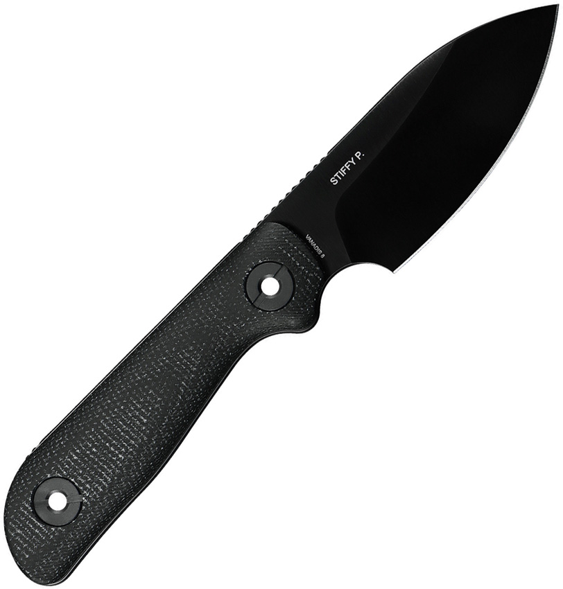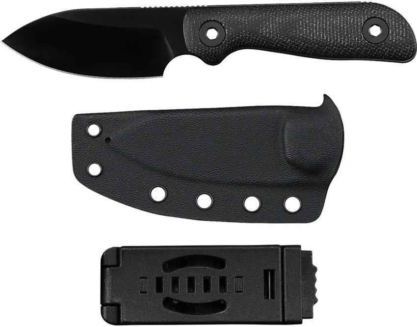6.75″ (17.15cm) overall. 3″ (7.62cm) black DLC coated blade. Black canvas micarta handle. Full tang. Lanyard hole. VANADIS8 steel blade. Black Kydex belt sheath. Boxed.