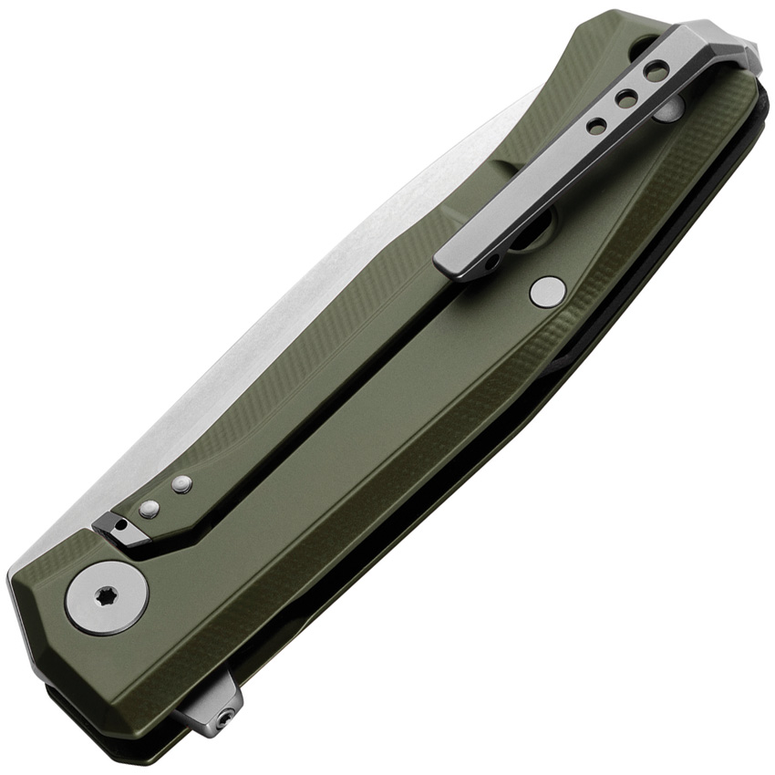 4.63″ (11.76cm) closed. 3.25″ (8.26cm) satin finish Bohler M390 stainless blade. Green aluminum handle. Extended tang. Glass breaker. Lanyard hole. Pocket clip. Boxed.