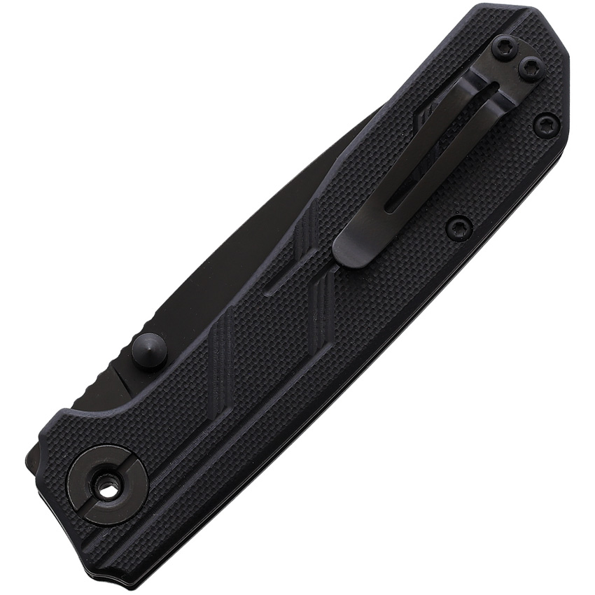 4.13″ (10.49cm) closed. 3.13″ (7.95cm) black finish stainless blade. Black G10 handle. Thumb stud. Pocket clip. Boxed.