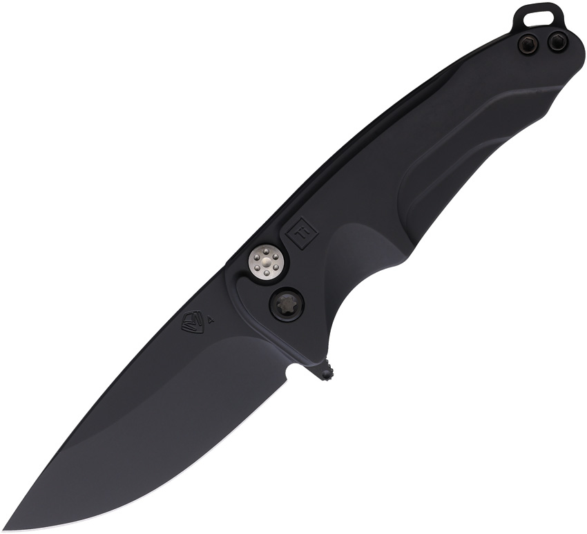 3.88″ (9.86cm) closed. 3″ (7.62cm) black DLC coated S45VN stainless drop point blade. Black DLC coated titanium handle. Extended tang. Lanyard hole. Pocket clip. Black nylon zippered storage case. Boxed.