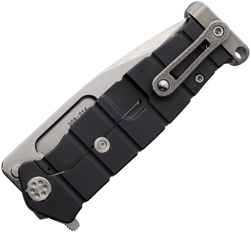 5.25″ (13.34cm) closed. 4.25″ (10.8cm) black PVD coated S35VN stainless drop point blade. Black PVD coated titanium handle. Extended tang. Lanyard hole. Pocket clip. Water tight storage case. Boxed.
