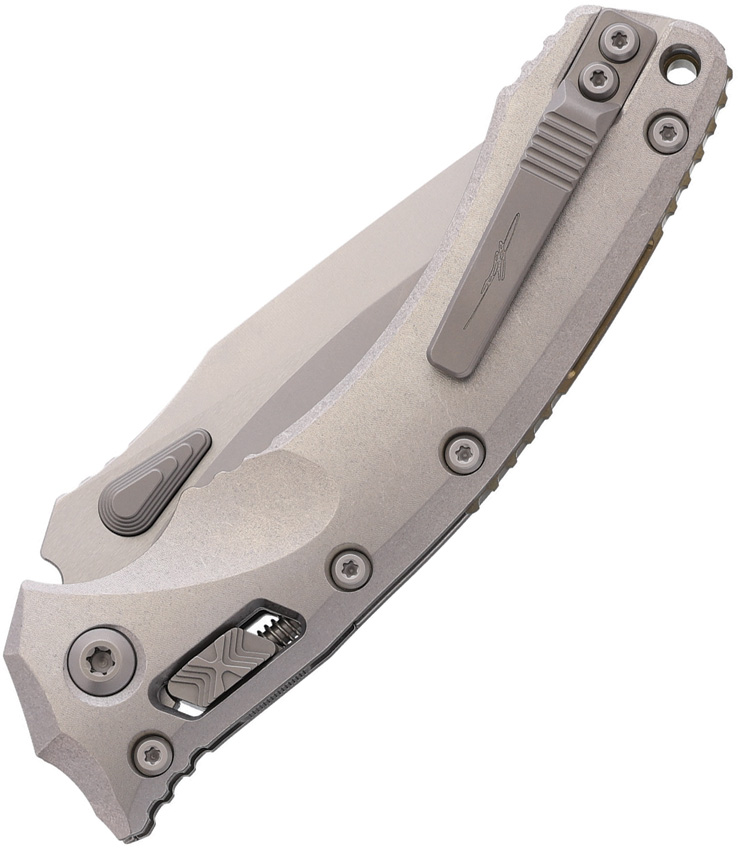 5.38″ (13.67cm) closed. 4″ (10.16cm) stonewash finish blade. Stonewash finish titanium handle. Thumb stud. Lanyard hole. Pocket clip. Marfione Select edition. Double vapor blast stainless blade. Bronze titanium accents. Boxed.