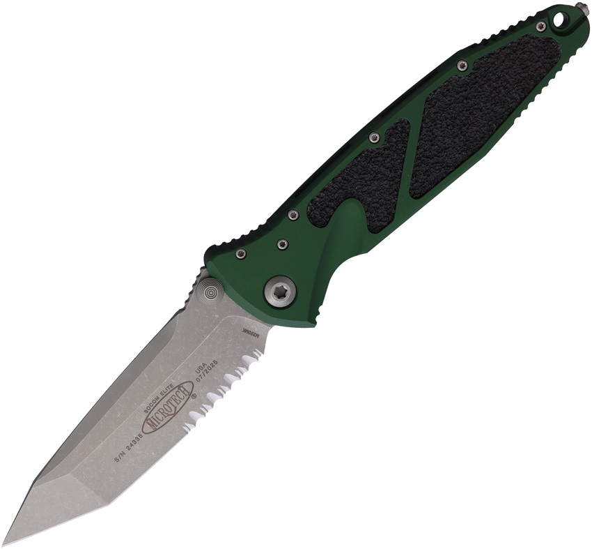 5.13″ (13.03cm) closed. 4″ (10.16cm) Apocalyptic finish partially serrated premium steel tanto blade. Emerald green aluminum handle with black traction insert. Thumb stud. Lanyard hole. Glass breaker. Pocket clip. Boxed.