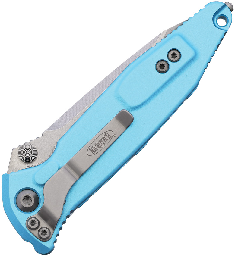 5.13″ (13.03cm) closed. 4″ (10.16cm) stonewash finish premium steel tanto blade. Turquoise aluminum handle with black traction insert. Thumb stud. Lanyard hole. Glass breaker. Pocket clip. Boxed.