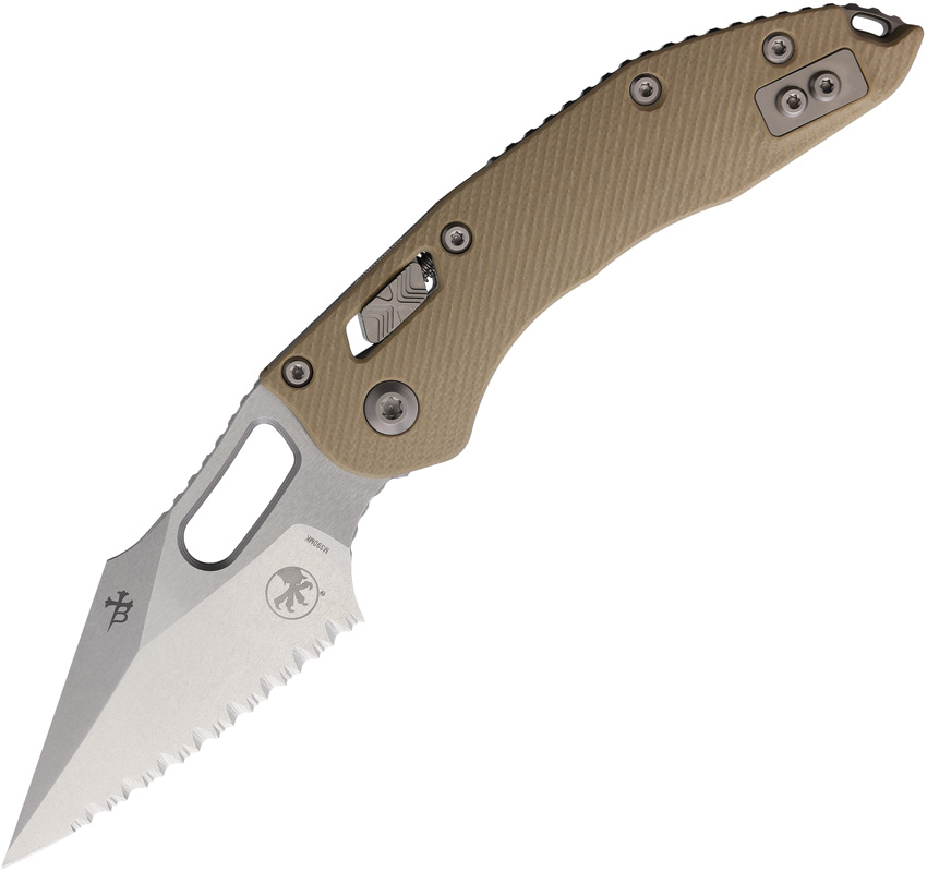 5″ (12.7cm) closed. 3.75″ (9.53cm) stonewash finish serrated Bohler M390MK stainless blade. Tan fluted G10 handle. Thumb pull. Lanyard hole. Pocket clip. Microtech item #169RL-12FLGTTA Boxed.