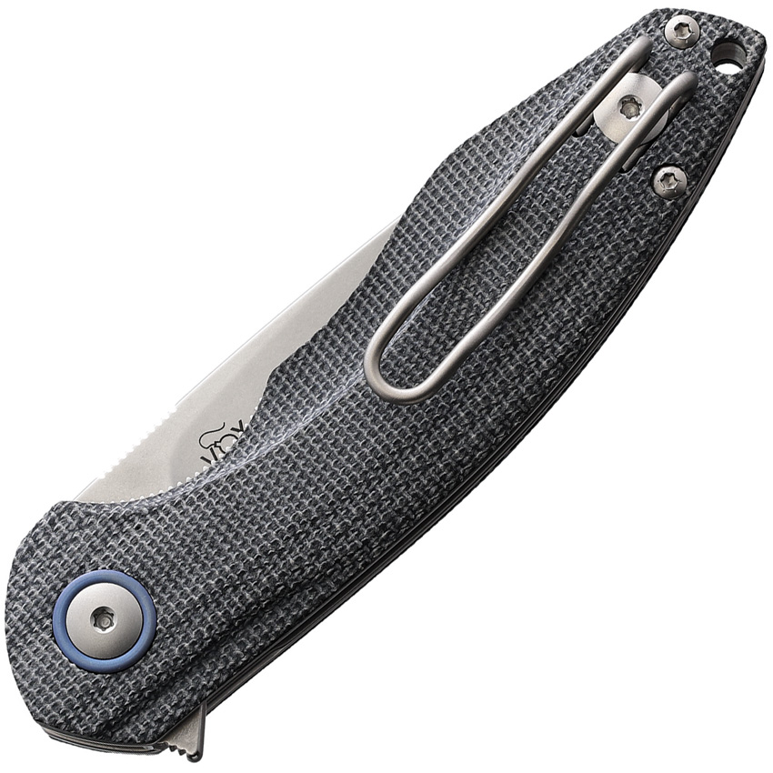 4.13″ (10.49cm) closed. 3″ (7.62cm) stonewash finish Bohler M390 stainless blade. Black canvas micarta handle. Extended tang. Lanyard hole. Pocket clip. Black nylon zippered storage case. Boxed.