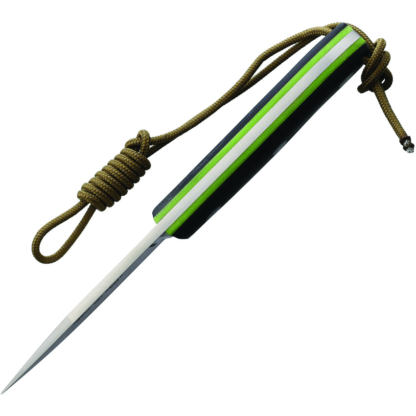 5.88″ (14.94cm) overall. 2.75″ (6.99cm) satin finish Bohler N695 stainless blade. Black G10 handle. Full tang. Lanyard hole. Brown leather belt sheath. Boxed.