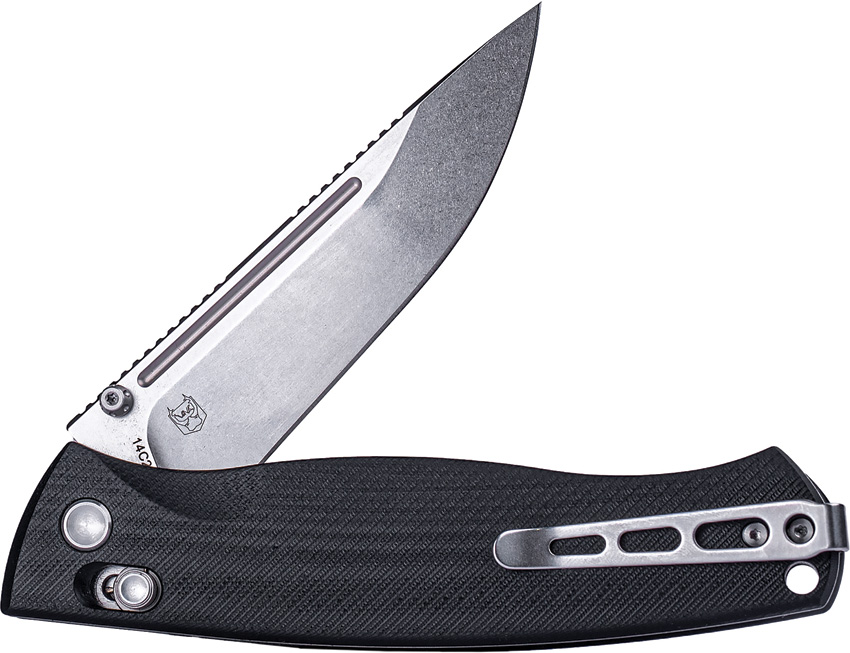 4.75″ (12.07cm) closed. 3.75″ (9.53cm) stonewash finish 14C28N Sandvik stainless blade. Black G10 handle. Pocket clip. Lanyard hole. Thumb stud. Boxed.