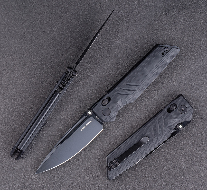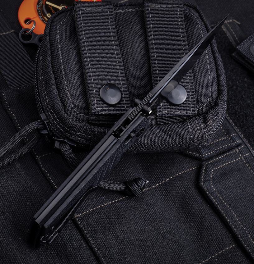 4.13″ (10.49cm) closed. 3.25″ (8.26cm) black PVD coated Bohler K110 stainless blade. Black G10 handle. Pocket clip. Thumb stud. Boxed.
