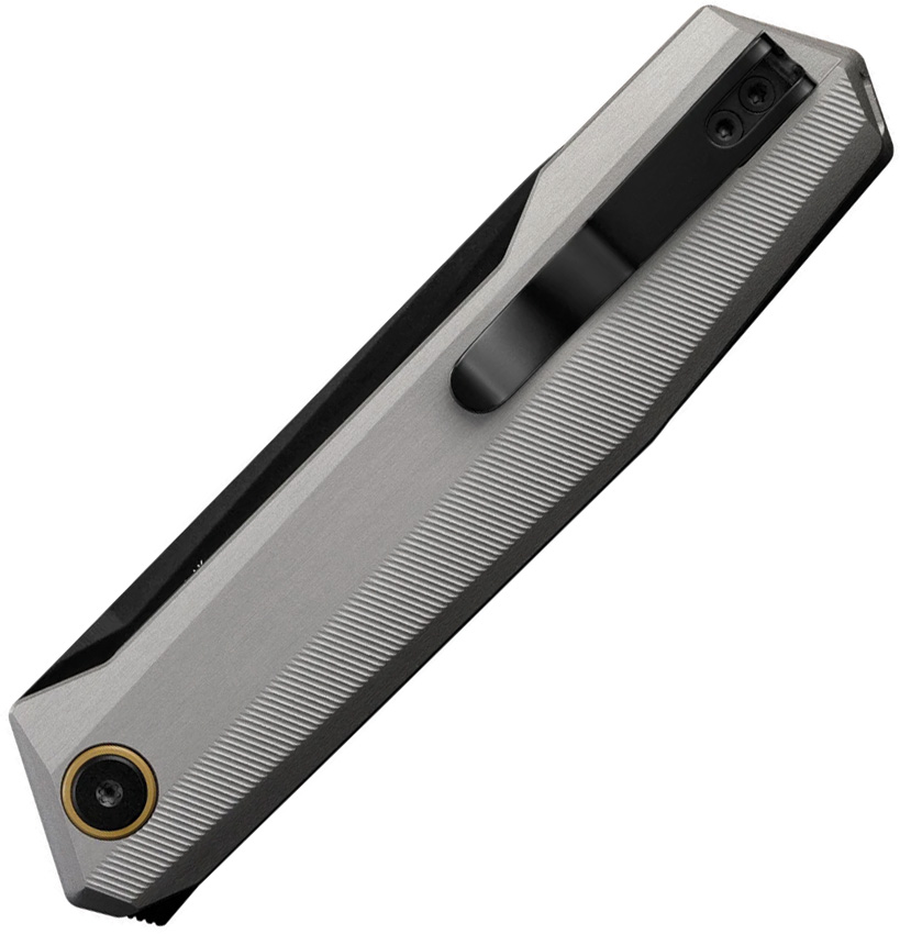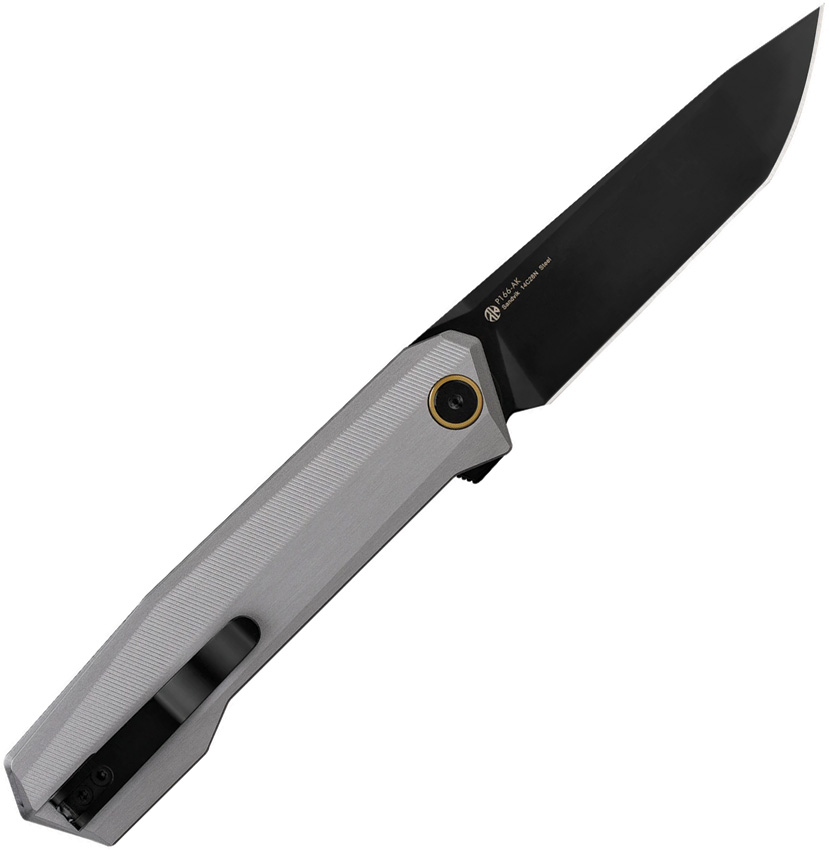 4.88″ (12.4cm) closed. 3.75″ (9.53cm) black DLC coated 14C28N Sandvik stainless tanto blade. Gray aluminum handle. Extended tang. Pocket clip. Lanyard hole. Boxed.