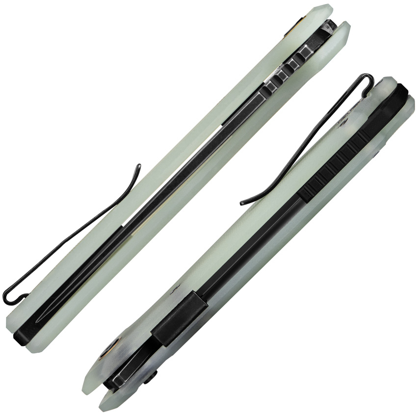 4.63″ (11.76cm) closed. 3.5″ (8.89cm) black stonewash finish 14C28N Sandvik stainless drop point blade. Jade G10 handle. Extended tang. Lanyard hole. Pocket clip. Boxed.
