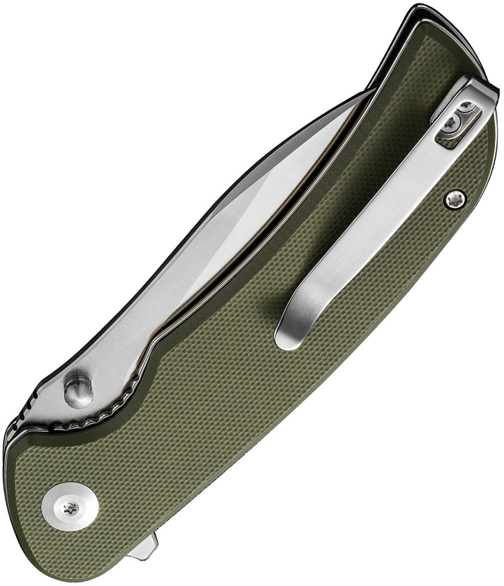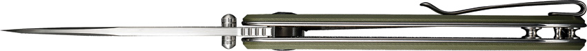 4.75″ (12.07cm) closed. 3.5″ (8.89cm) satin finish 9Cr18MoV stainless blade. OD green G10 handle. Extended tang. Thumb stud. Pocket clip. Boxed.