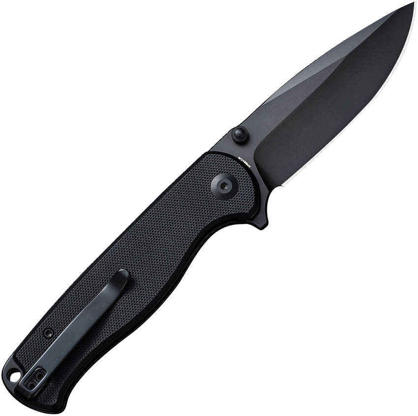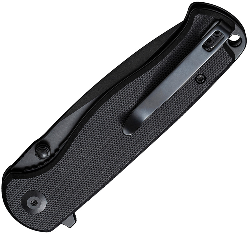 4.5″ (11.43cm) closed. 3.5″ (8.89cm) black finish 9Cr18MoV stainless drop point blade. Black G10 handle. Extended tang. Thumb stud. Lanyard hole. Pocket clip. Black nylon zippered storage case. Boxed.