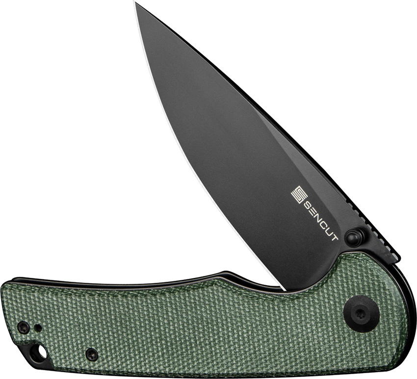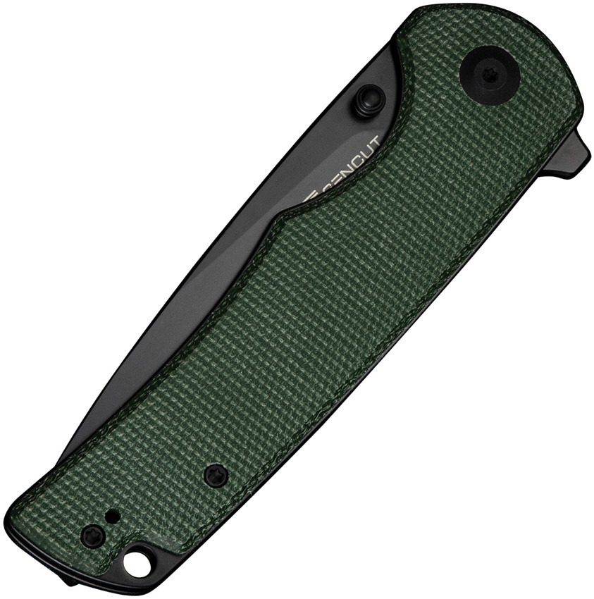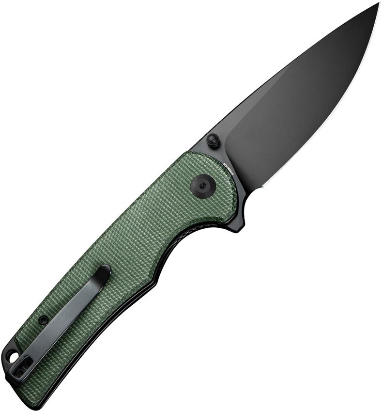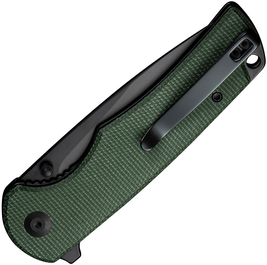 4.63″ (11.76cm) closed. 3.63″ (9.22cm) black stonewash finish 9Cr18MoV stainless drop point blade. Green canvas micarta handle. Extended tang. Thumb stud. Lanyard hole. Pocket clip. Black nylon zippered storage case. Boxed.