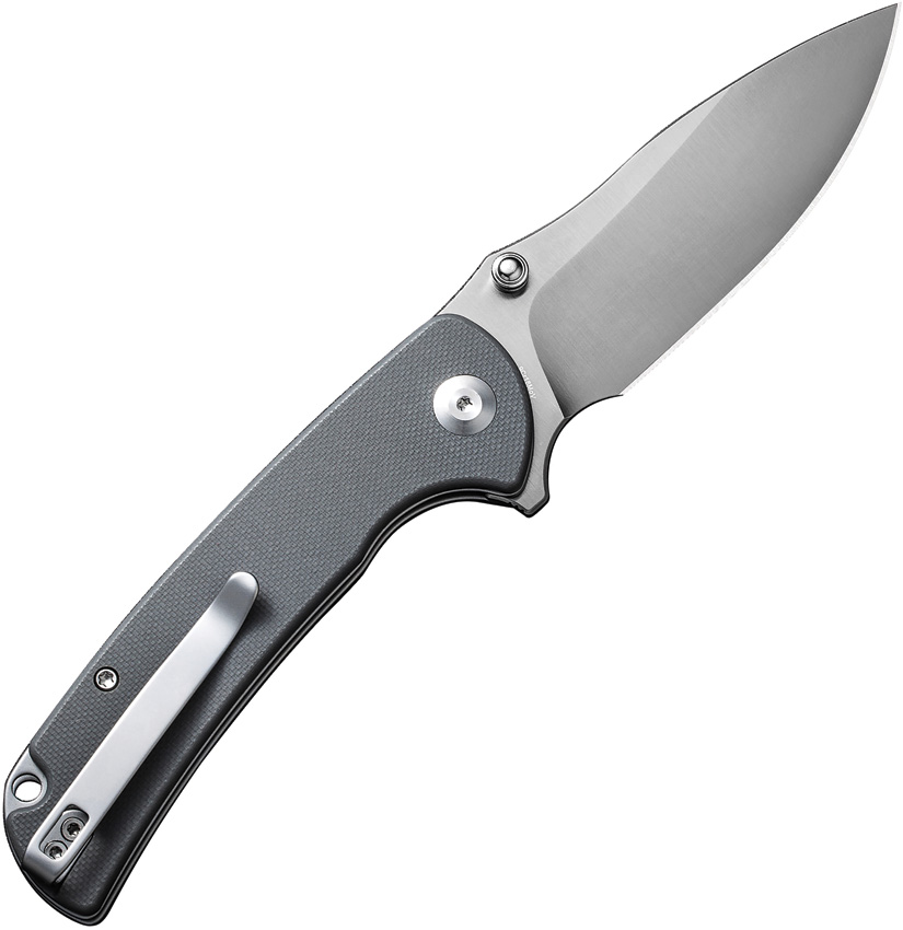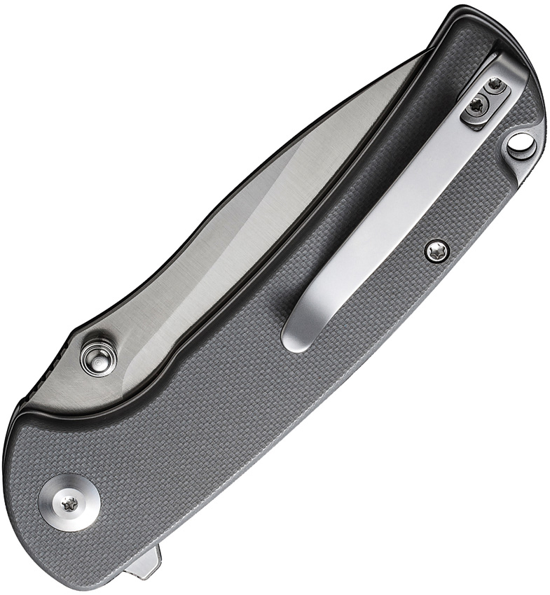 4.5″ (11.43cm) closed. 3.5″ (8.89cm) satin finish 9Cr18MoV stainless blade. Gray G10 handle. Extended tang. Thumb stud. Lanyard hole. Pocket clip. Black nylon zippered storage case. Boxed.